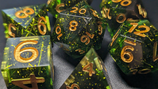 Jade Gilt - Set of 7 polyhedral sharp edge dice